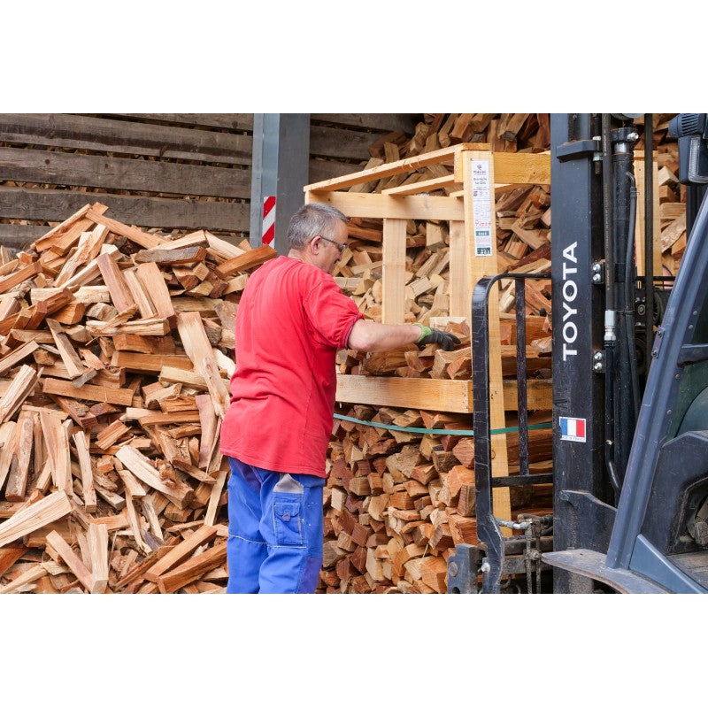 Paleta składa się wyłącznie z ćwiartek drewna, z gatunków najbardziej kalorycznych: buka, dębu, grabu i jesionu.